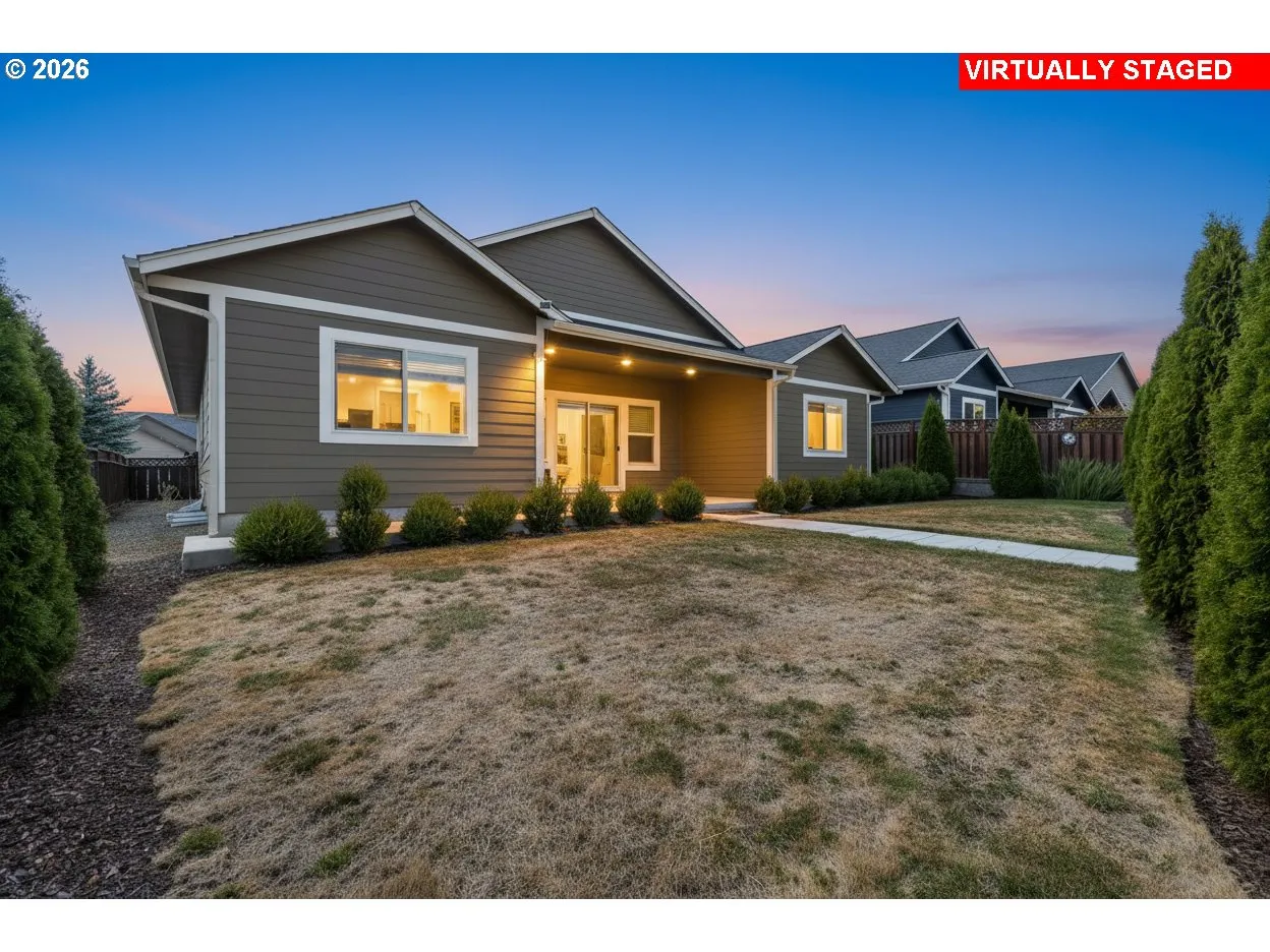 Welcome to Your Like-New Custom Home in Winston, Oregon!Step inside this beautifully crafted home by Shelby & Miguelena Construction, where quality craftsmanship and thoughtful design are evident in every detail. The open-concept floor plan features soaring vaulted ceilings, beautiful flooring, and a warm, inviting layout that flows effortlessly for both everyday living and entertaining.At the heart of the home, the gourmet kitchen is truly a standout. The oversized island with granite countertops doubles as a spacious eating bar—perfect for casual dining, meal prep, or gathering with friends and family. With abundant storage and stylish finishes, this kitchen blends functionality with timeless appeal.The spacious primary suite offers a relaxing retreat, featuring dual walk-in closets that provide generous storage and a luxurious ensuite bathroom designed for comfort and convenience.Step outside and enjoy easy, low-maintenance living. The front yard features attractive turf for year-round curb appeal with minimal upkeep. The fully fenced backyard offers privacy and peace of mind, while capturing beautiful surrounding views. From the dining area, step directly onto the covered patio—an ideal space for morning coffee, weekend barbecues, or simply unwinding in the evening.Located in the heart of Winston, this home is just minutes from many of Douglas County’s favorite destinations. Spend the day exploring Wildlife Safari, enjoy award-winning wines at Abacela Winery, or take advantage of nearby fishing, floating, and nature walks along the South Umpqua River. With convenient access to the highway, weekend trips to the Oregon Coast—with its scenic beaches, charming towns, and iconic lighthouses—are an easy drive away.This home offers the perfect blend of modern comfort, low-maintenance living, and convenient access to the natural beauty and recreation that make Southern Oregon such a special place to live.