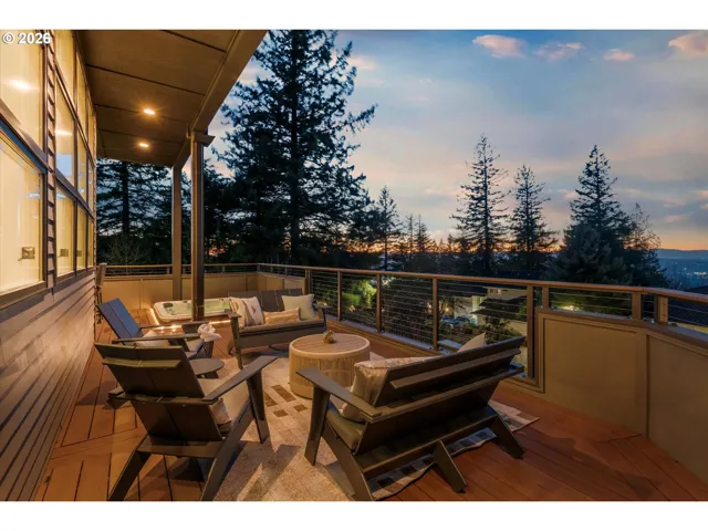 Open Saturday 11:30 am – 1:30 pmPerched atop Nansen Summit—Lake Oswego’s highest point—this pristine contemporary home delivers a true “top of the world” experience. Enjoy sweeping views of Mt. St. Helens, Portland’s city lights, and the surrounding valley from the home’s north and west exposures. Nestled beside Nansen Park, the property offers exceptional privacy, protected green space, and a serene setting perfect for daily walks.Filled with sunlight this spacious home has been meticulously maintained. Gourmet kitchen features that shine with premium appliances including a Miele dishwasher, Liebherr refrigerator, six-burner Wolf range, and double Wolf ovens. A covered porch off the kitchen, complete with gas, electricity, and water, makes year-round grilling and entertaining easy.The luxurious primary suite features an expansive walk-in closet, dressing room, new walnut floating floors, and a heated bathroom floor. Private door off the primary to wrap around deck. Enjoy the breathtaking view from your bedroom!Comfort is effortless with two furnaces and two AC units providing zoned climate control. Step outside to a new saltwater hot tub with in-deck LED lighting, a 50-year Azek TimberTech mahogany deck, and a new LED-lit outdoor staircase. A whole-house natural-gas generator ensures uninterrupted power.Enjoy all the Mt. Park amenities—pools, athletic courts, event spaces, and miles of trails—right outside your door. Minutes to Lake Oswego and Lake Grove shops and dining, with quick access to I-5 for an easy Portland commute.A rare combination of views, privacy, luxury, and location. Truly a show-stopper!