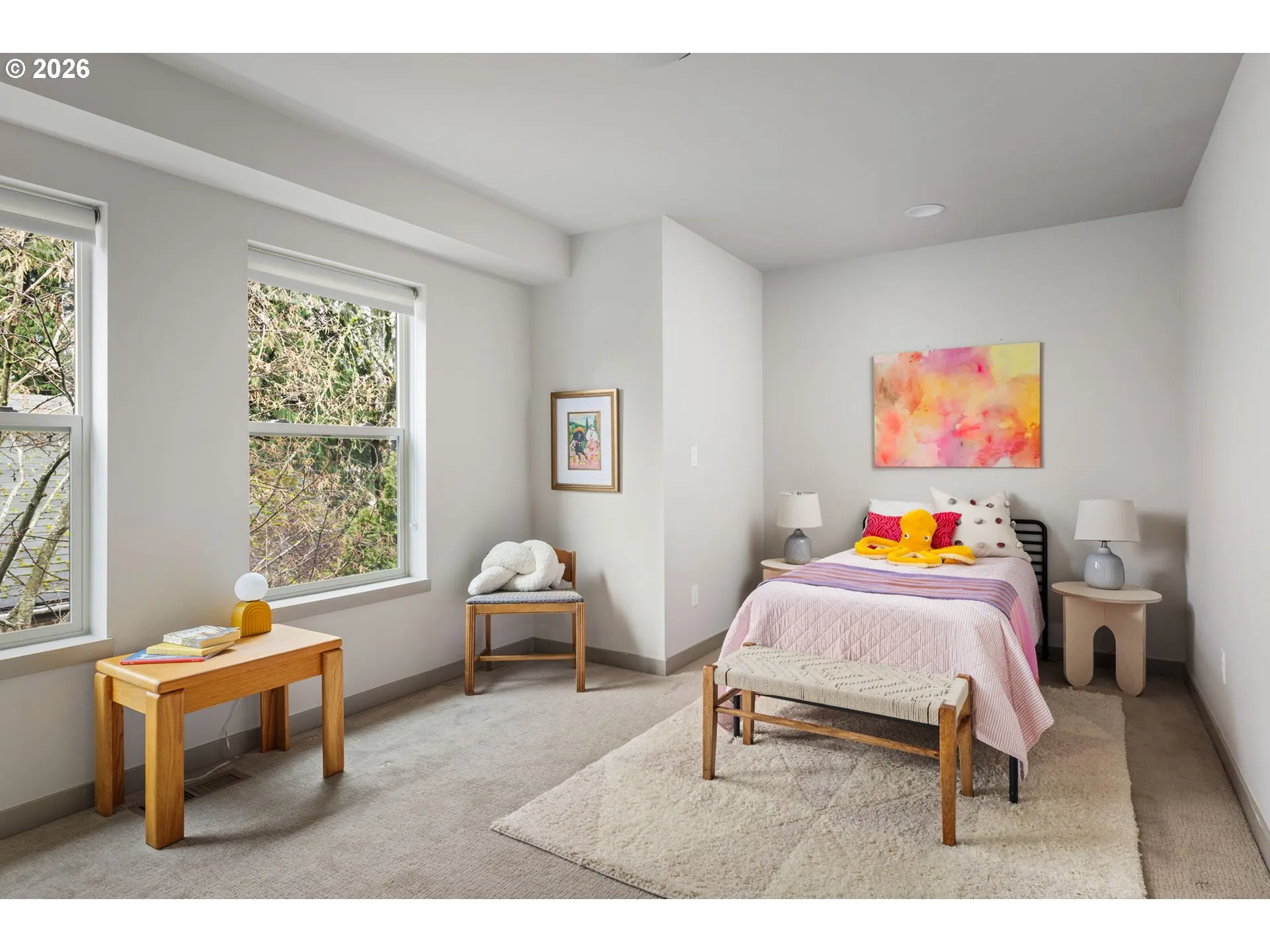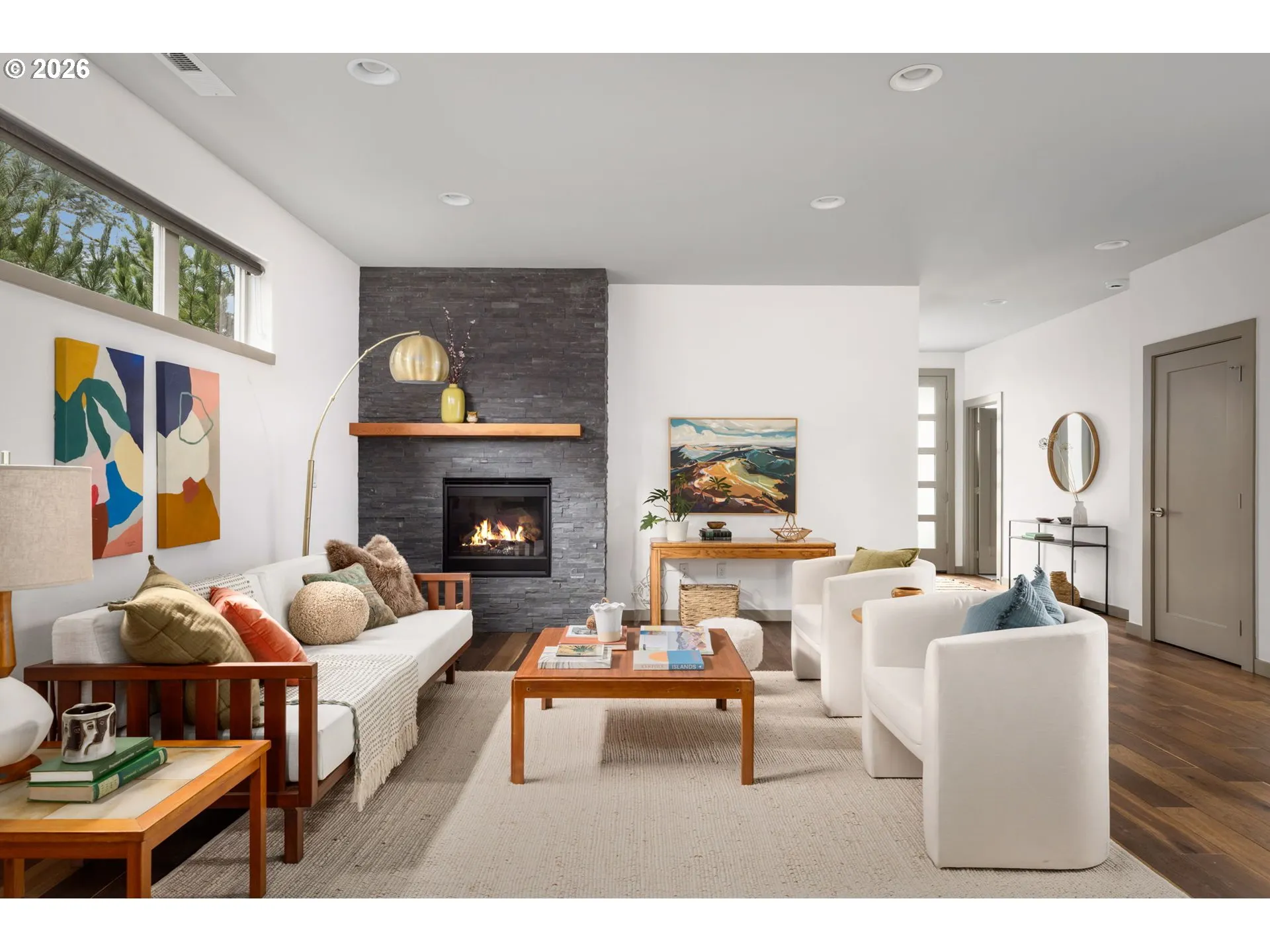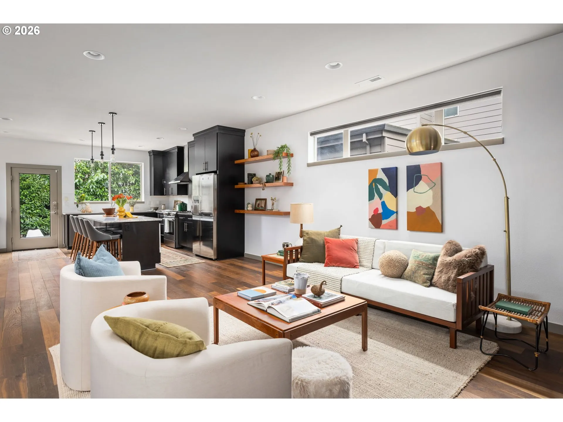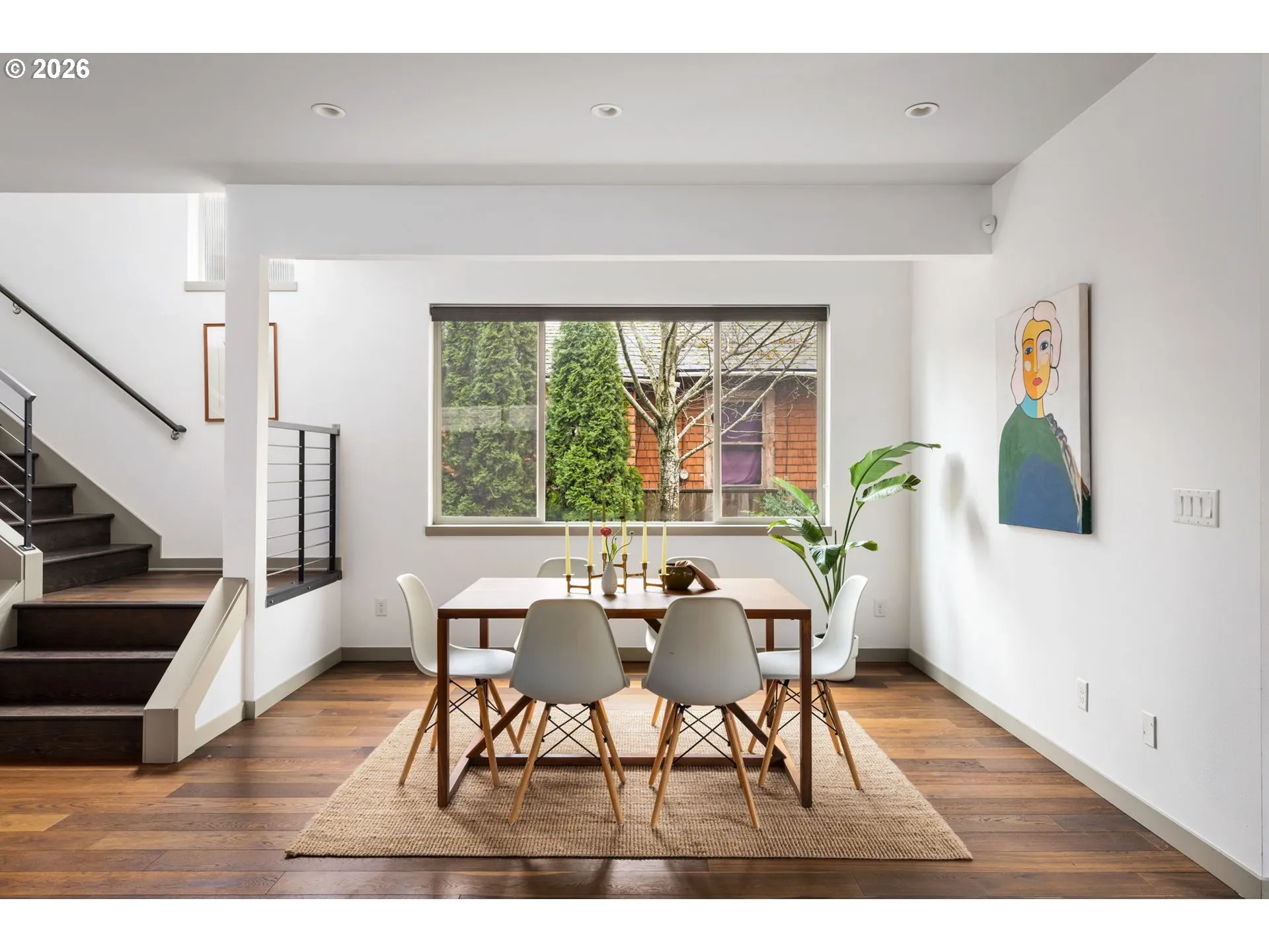 Welcome to your contemporary crush! Four bedrooms, three bathrooms, and enough natural light to make your houseplants write you thank you notes. This beauty serves clean lines, big vibes, and walls of windows that basically whisper, “let there be light.” Inside you’ll find gorgeous wood floors, an open-concept living space, and a fireplace that’s ready to set the mood. This house doesn’t play when it comes to functionality. A main level bedroom paired with a full bathroom right across the hall makes multi-gen living an absolute breeze. Perfect for guests who want privacy, in-laws who appreciate their own zone, or a home office setup with a proper reset space. It’s flexible, functional, and genuinely comfortable. The kitchen brings the heat with a generous island made for charcuterie spreads, chaotic baking experiments, or your morning coffee ritual before conquering the world. Enjoy a glorious pantry that swallows Costco runs whole and still has room for your secret snack stash. Upstairs are 3 spacious bedrooms that don’t believe in the word “cramped,” 2 full bathrooms and the laundry room, because hauling baskets up and down stairs is a workout no one asked for. Keep the clothes where they live and retire from the Stairmaster for good. Out back you have thoughtful landscaping and a yard that is roomy enough for pups, parties, or plotting your next garden era. it’s giving low maintenance and high impact. [Home Energy Score = 8. HES Report at https://rpt.greenbuildingregistry.com/hes/OR10158722]