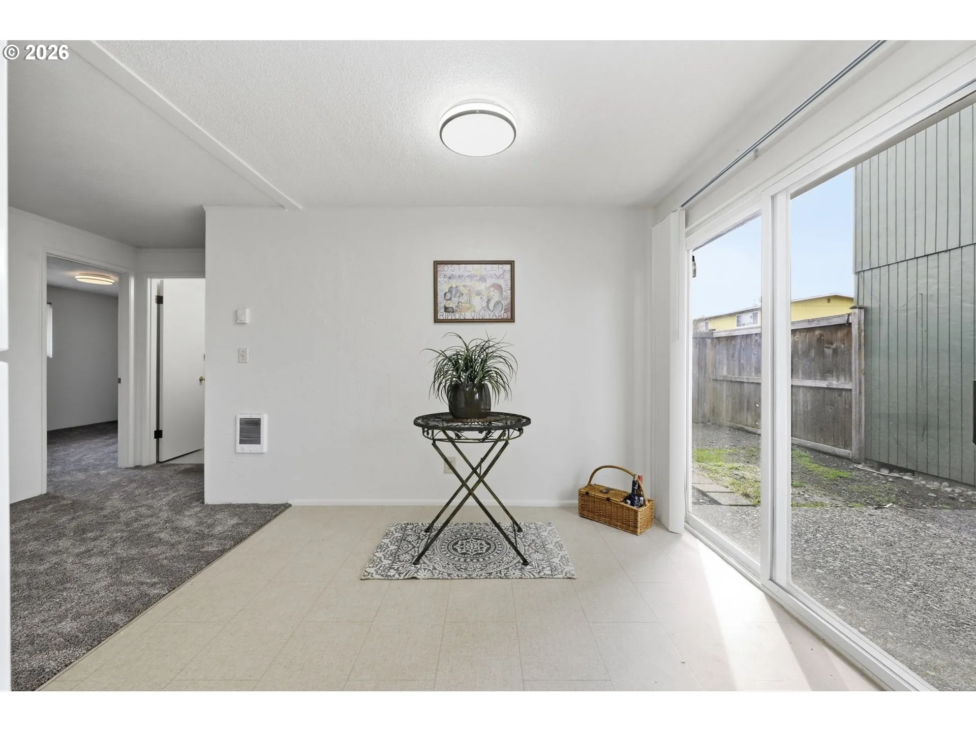 Affordable Living! Rare, single level condo, no stairs. (See floor plan in photos for room dimensions. Desirable end unit. The complex is conveniently located near shopping, bike path, bus line, University of Oregon, Lane Community College, downtown. Interior freshly painted. New vinyl plank flooring in kitchen/dining area and new carpet in living room and bedrooms. Bathroom also has new matching vinyl plank flooring and new toilet. New light fixtures throughout. New refrigerator. All appliances included. Low property taxes and comparatively low HOA fees ($265\mo) that cover many amenities like; water, sewer, trash, exterior of building, landscaping and a seasonal pool! With almost 900 (896) sq ft, the bedrooms are good sized and the layout provides room for an eating area table, living room couch, recliners or chairs. Spacious condo that’s very economical on the budget! Pet policy; 2 allowed each under 30lbs. See floor plan for room dimensions. Appointment only.