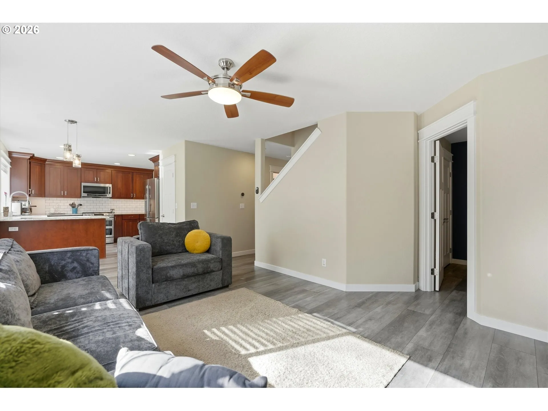 Beautiful head to toe custom remodel! Every surface redone with quality, custom finishes. High quality LVP throughout main floor. All new paint, trim, flooring, shaker doors, plush carpet, custom wrought iron railing, fixtures and more! Completely remodeled kitchen with new custom cabinets with crown molding finish and under cabinet lighting. All updated stainless gas appliances, 5 burner gas range, tile backsplash, quartz counters & eating bar, pantry. Every bathroom remodeled with LVP, tile, quartz, tiled showers with shampoo niches. Primary bedroom with coved ceiling, walk-in closet, suite with double sinks, updated cabinets, tiled shower with dual shower head. 4 bedrooms, 1 on main floor, plus incredible bonus room! All smart features including smart lighting, Nest thermostat, and more. Laundry with shiplap, butcher block folding table, custom organizer. Garage with built-in bike racks, professional storage racks. Slider with integrated blinds leads to incredible stamped concrete patio with built-in seating and tool shed. Incredible neighborhood & schools! Updated siding, windows, gutters, exterior paint, plumbing, furnace and AC! Better than new construction!