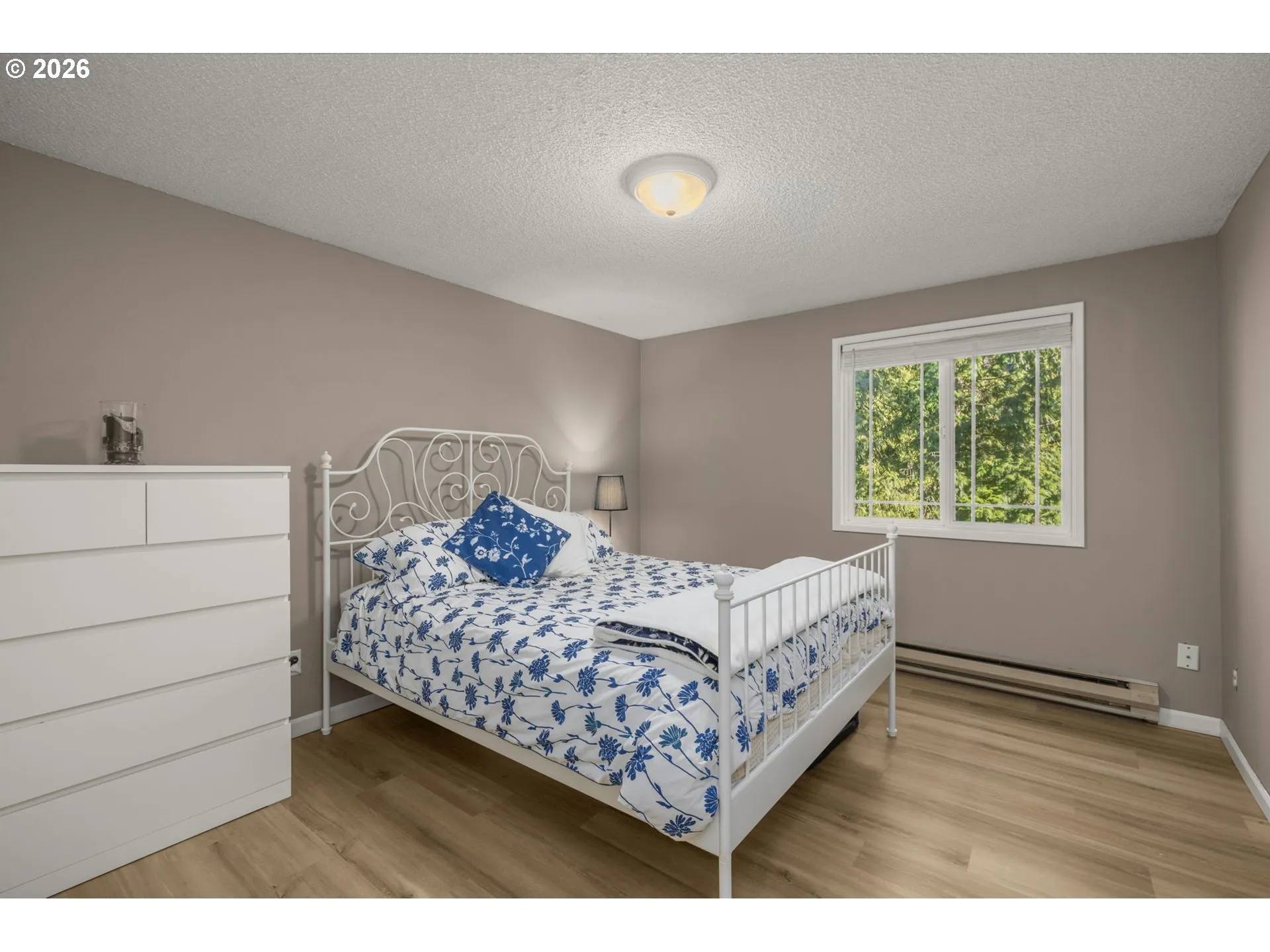 Enjoy easy one-level living in Wilsonville in this beautifully updated condo surrounded by greenery. Tucked into a quiet, tree-lined setting, this home offers a peaceful retreat with unbeatable convenience. New flooring runs throughout, complementing the refreshed kitchen with a tile backsplash and new stainless Energy Star appliances, including a built-in microwave and dual drawer dishwasher. The living room offers warmth and character with a cozy wood-burning fireplace, built-in bookcases, and a sliding glass door opening to a private balcony that overlooks peaceful trees and greenspace, and offers extra storage. Two comfortable bedrooms offer great closet space, and the home includes the convenience of an in-unit washer and dryer. Located just minutes from shopping, dining, parks, and the town center, this home also includes a dedicated parking space and access to community amenities such as a fitness center, weight room, and pool. The HOA covers water, commons, exterior maintenance, grounds maintenance, insurance, sewer, and trash.