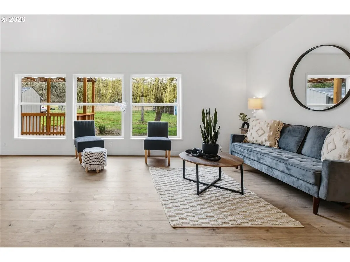Eagle creek Mini-farm opportunity! Beautifully remodeled 1456 SF home on 2.54 flat, useable acres in sought after Eagle Creek. This move-in ready home features Valuted ceilings, New luxury vinyl plank flooring, New Stainless appliances, New counters, Pantry, Remodeled bathrooms, and fresh interior and exterior paint. Spacious primary suite with Huge walk-in closet. Perfect for horse lovers with a detached barn featuring 3 stalls, arena area and tack room. Fenced and cross fenced and backs to peaceful greenspace.Bring the animals and hobbies!