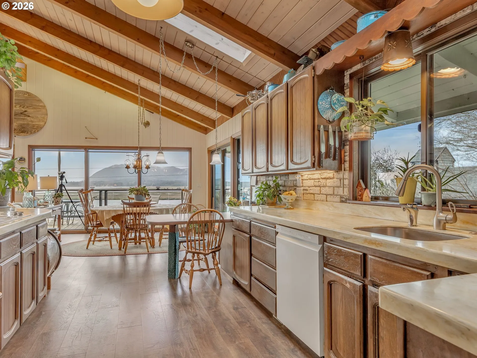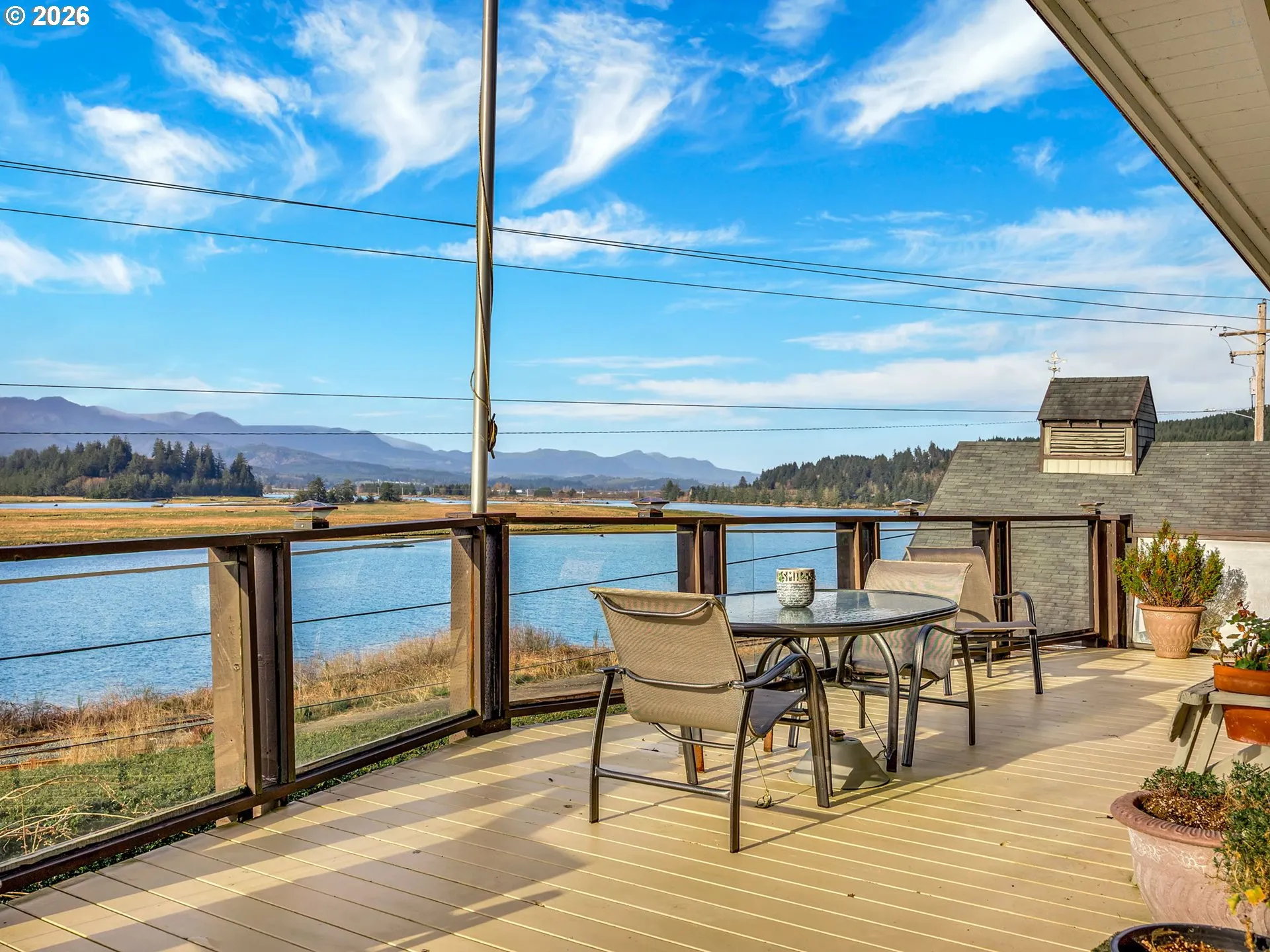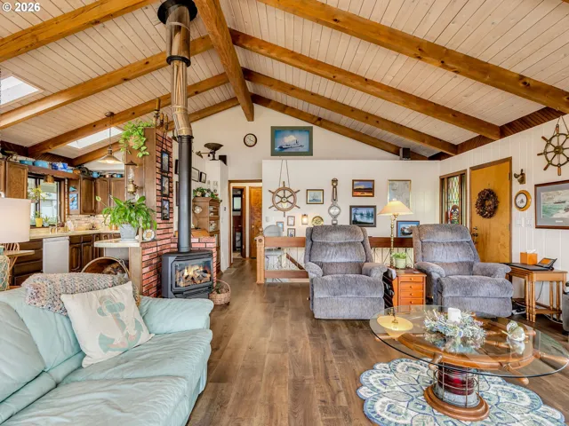Rare opportunity to own a unique custom-built coastal property with views of the bay. This home has been lovingly cared for by the same family since it was built and sits on a beautifully landscaped half-acre lot just minutes from Manzanita’s shops, restaurants, and beaches. The property includes three separate structures: the main home, an apartment with shop space on lower level, and a 2-bay boat barn. The main home was designed to resemble the bow of a boat and features a wraparound porch overlooking the water. Inside you’ll find an open main level with high ceilings, a spacious kitchen, living and dining areas, bedroom, laundry, and full bath. The lower level includes a garage, second bedroom, full bathroom, office space/3rd bedroom with Murphy bed, and additional storage.The separate apartment with bay views has full living quarters on upper-level with kitchen, living/dining, bedroom, bathroom, and washer/dryer. The lower level offers unfinished shop space with storage and a half bath. The boat barn has two bays and additional workspace for hobbies, woodworking, or storage. Set back from the main road with spectacular views, this special property offers the flexibility of a coastal home, retirement retreat, and/or investment opportunity.