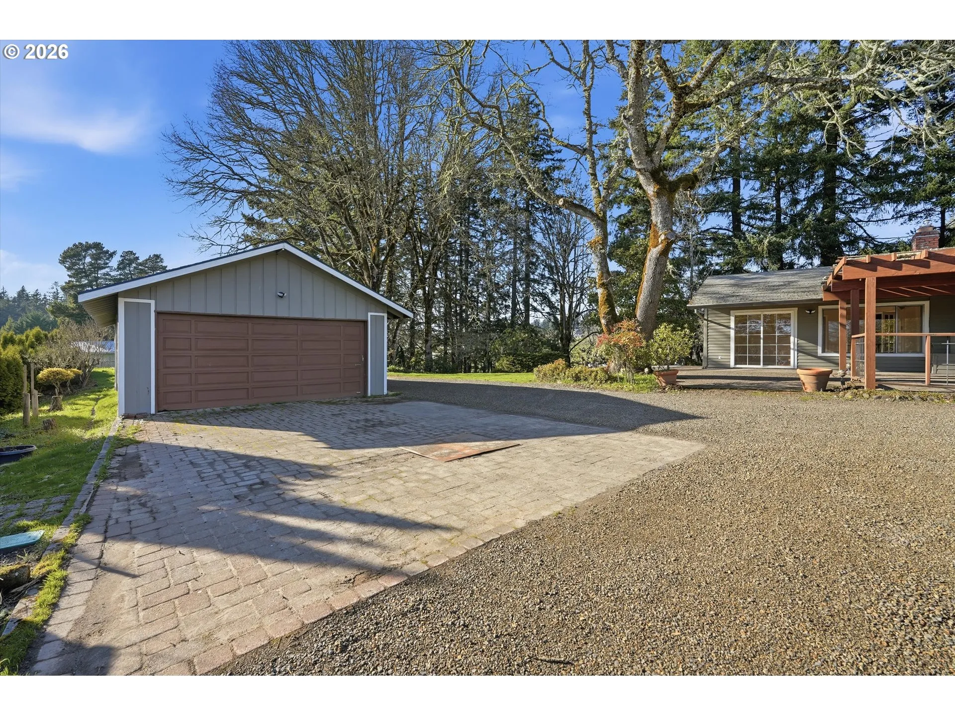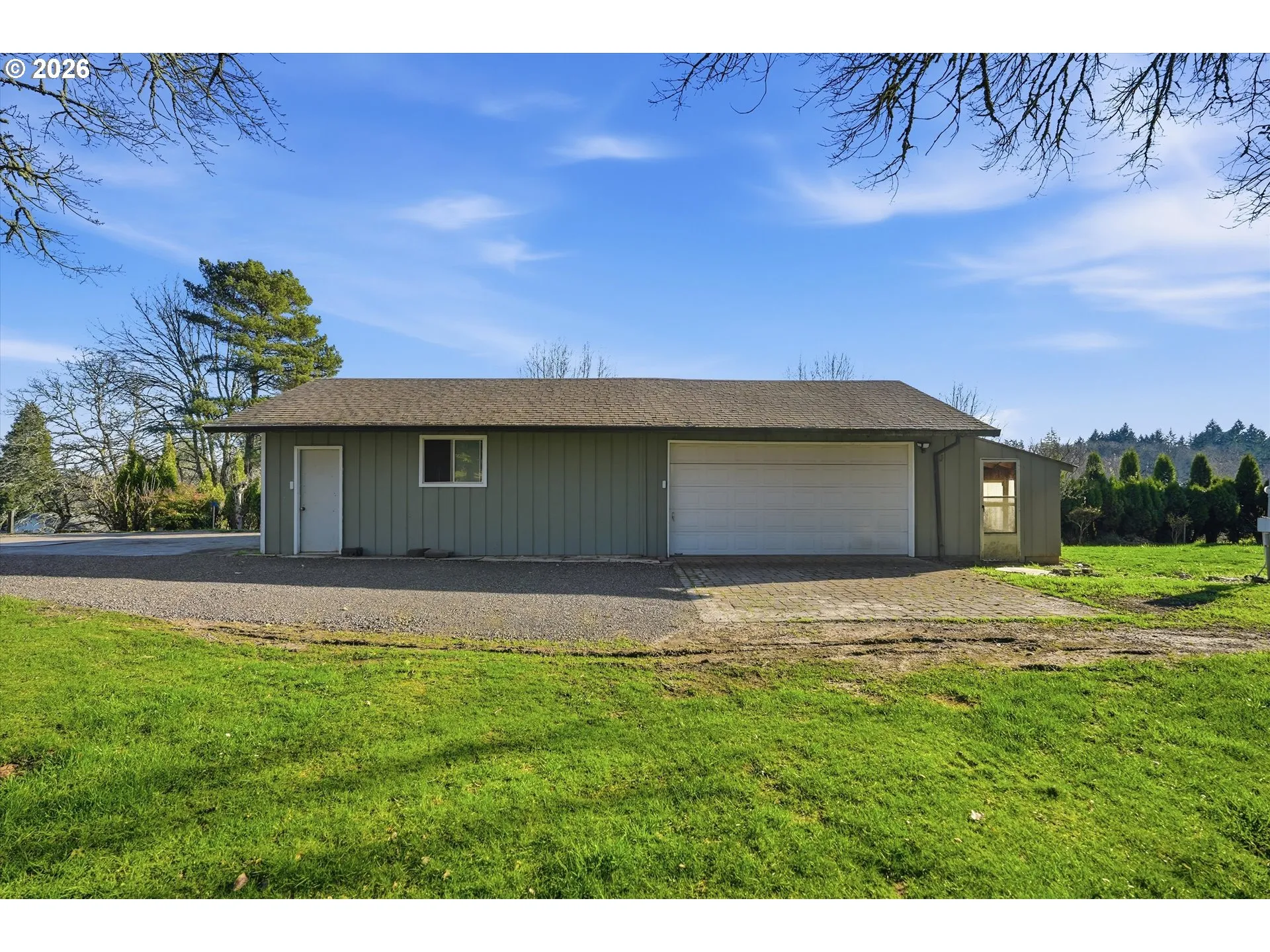 Very rare affordable home in Helvetia on paved road. One level with 3 beds and 3 baths, detached 4 car garage, detached art studio or craft room, 3 stall barn/pole building, play house, pasture, trees, territorial views, garden, fruit trees, and grapes. The home is privately tucked away from the road on a knoll with good sun exposure and full fenced property with a gate. Home has been nicely upgraded throughout the years including newer baths with heated floors, slab granite in the kitchen and vinyl windows. Brick fireplace has had a propane stove added for ambience and easy heating. 3rd bedroom comes with built-in Murphy Bed. Come see this one while it lasts. Call with questions.